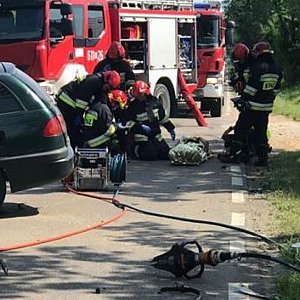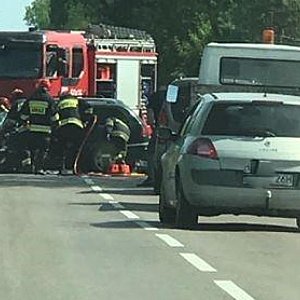 Wczesnym przedpołudniem na trasie Pułtusk - Nasielsk w Płocochowie doszło do groźnego zdarzenia z udziałem busa i samochodu osobowego