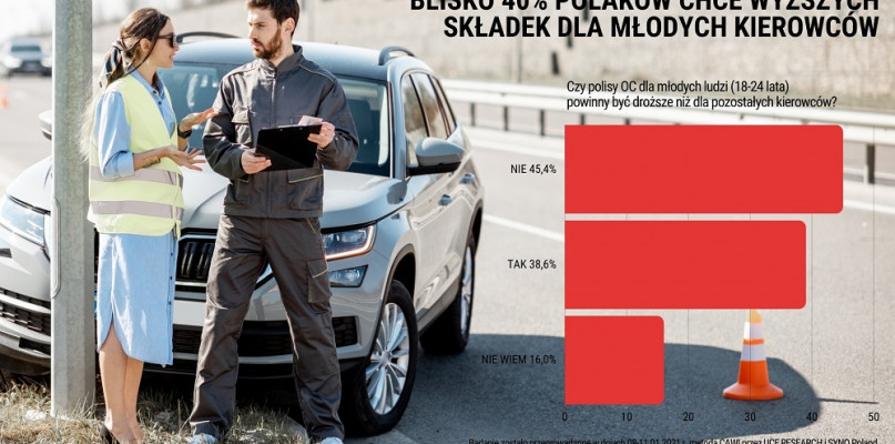 Z badania UCE RESEARCH i SYNO Poland wynika, że 38,6% Polaków twierdzi, że kierowcy w wieku 18-24 lat powinni płacić wyższe OC niż do tej pory. Z kolei 45,4% jest przeciwnego zdania, a 16% nie ma opinii na ten temat. Według Macieja Kamińskiego, eksperta rynku szkód komunikacyjnych, prezesa zarządu HELPER CPP, wyniki przede wszystkim pokazują, że Polacy są podzieleni w tej kwestii. Ale też dają do zrozumienia, że spora część społeczeństwa dostrzega w tym zakresie problem. Powszechnie wiadomo, że młodzi powodują najwięcej wypadków i kolizji drogowych.