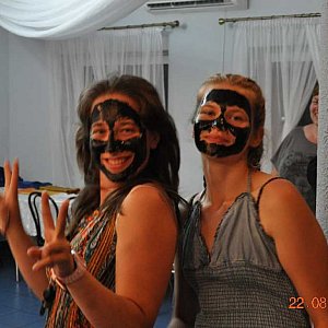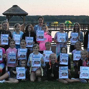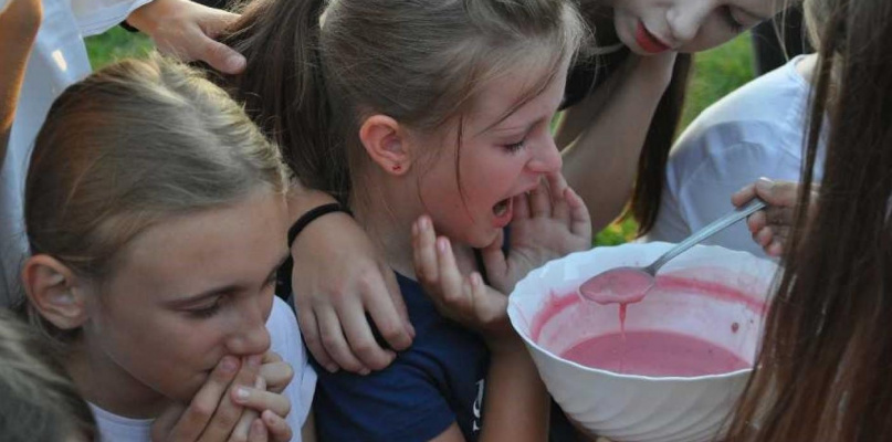 Po czwartkowej zabawie przy muzyce gdzie dziewczęta wykazały się pomysłowością przy malowaniu twarzy nadszedł piątek, czyli czas na ognisko i otrzęsiny młodszej grupy. Całą zabawę przygotowały starsze zawodniczki z rocznika 2005-6. Miały dużo pracy ponieważ do chrztu było aż 21 młodszych koleżanek. Zabawa była przednia. Starszy zespół przygotował wiele zadań do wykonania jak jedzenie kisielu z niespodziankami, zgadywanki z nagrodami czy zabawy z mąką. Wszystko zakończyło się uroczystą przysięgą i pasowaniem na zawodniczkę LUKS "Lider" Winnica. Następnie miło spędziliśmy czas przy pieczeniu na ognisku kiełbasek. Dziewczęta już żałują, że w sobotę po ostatnim sparingu z dziewczętami z Mławy wyjeżdżamy i zapowiadają, że chętnie wrócą tu za rok.
