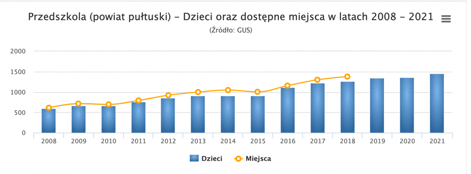 Według danych GUS za rok 2021, w powiecie pułtuskim mieszkało 2700 dzieci w wieku 0-4 lata.