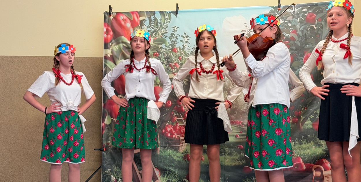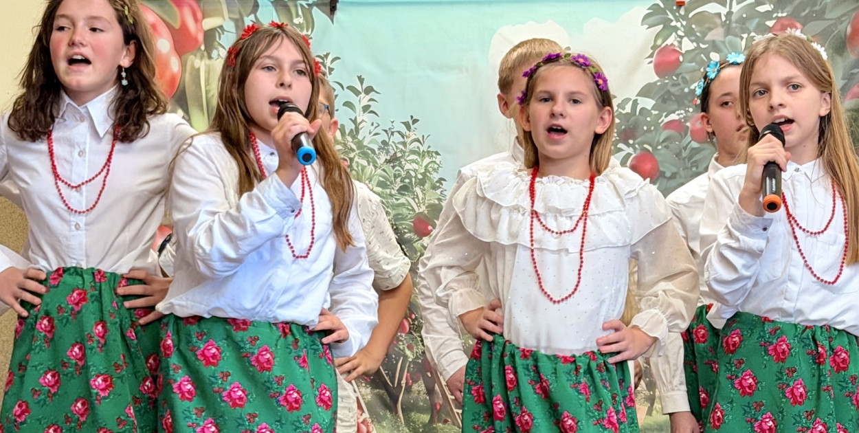 Przedszkolaki i uczniowie zaprezentowali przygotowany z nauczycielami program pełen pieśni ludowych i biesiadnych. Młodzi artyści wystąpili w tradycyjnych strojach, które dodały wydarzeniu autentycznego folklorystycznego klimatu. W repertuarze znalazły się m.in. „Czerwone Jabłuszko”, „Zielony Mosteczek” czy „W moim ogródeczku” — melodie znane i lubiane przez kolejne pokolenia. Sala szybko wypełniła się wspólnym śpiewem, a uśmiechy dzieci i rodziców tworzyły niezwykle ciepłą atmosferę. Występy najmłodszych zostały nagrodzone gromkimi brawami, a wielu gości nagrywało je telefonami.