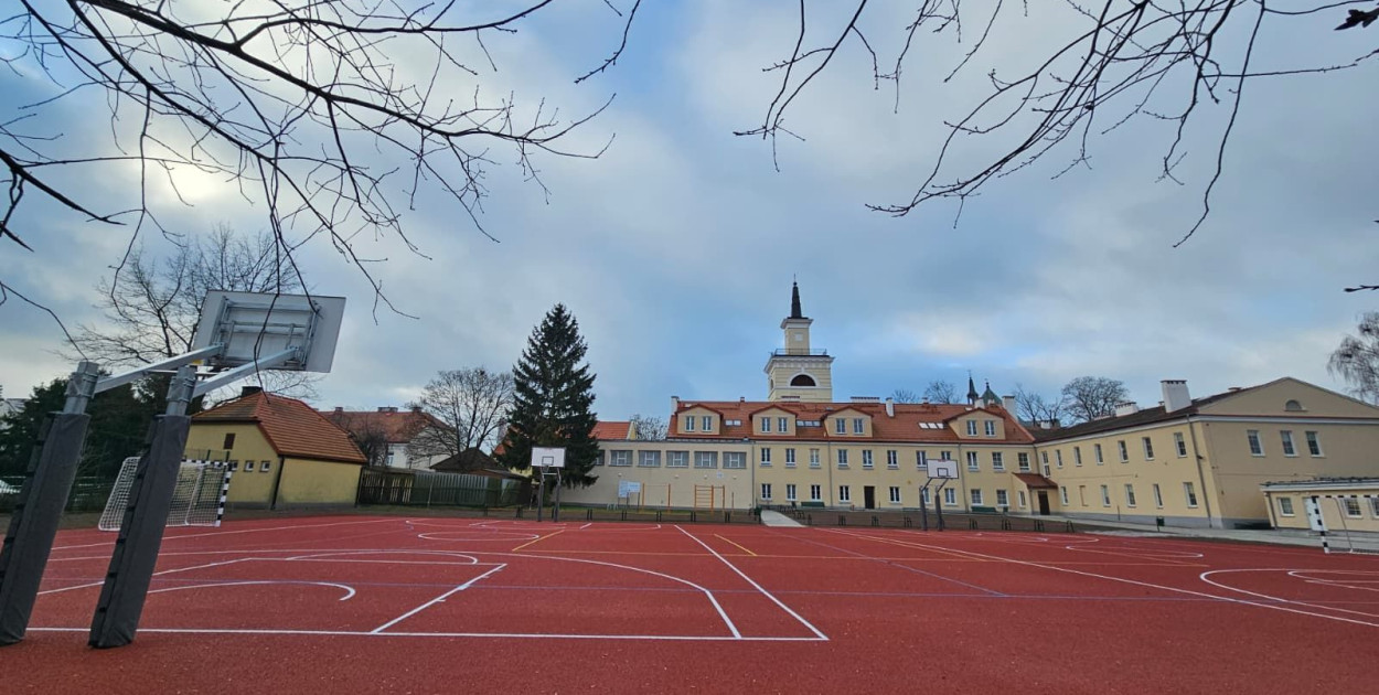 5. Zagospodarowanie terenu wokół boiska – trawnik wraz z nasadzeniami, 12 szt. drzew typu klon jesionolistny, co jest zgodnie z decyzją Mazowieckiego Konserwatora Zabytków.