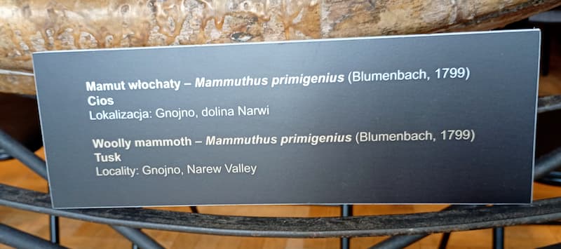 Podczas Konferencji Paleobiologicznej Sekcji Paleoentomologicznej PTE w PAN Muzeum Ziemi przy Alei Na Skarpie w Warszawie wzrok przyciągnął ogromny cios, wygięty jak olbrzymi półksiężyc. Dopiero po podejściu bliżej odczytałem napis na tabliczce: „Mamut włochaty – Mammuthus primigenius (Blumenbach, 1799). Cios. Lokalizacja: Gnojno, dolina Narwi”.