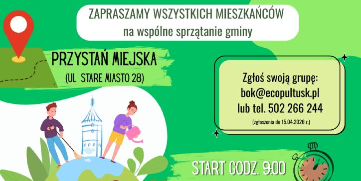 Już 18 kwietnia 2026 roku mieszkańcy Pułtusk będą mieli okazję wspólnie uczcić Dzień Ziemi, angażując się w działania na rzecz środowiska naturalnego. W sobotnie przedpołudnie odbędzie się akcja sprzątania gminy, na którą serdecznie zapraszamy wszystkich mieszkańców – zarówno indywidualnie, jak i w grupach zorganizowanych.