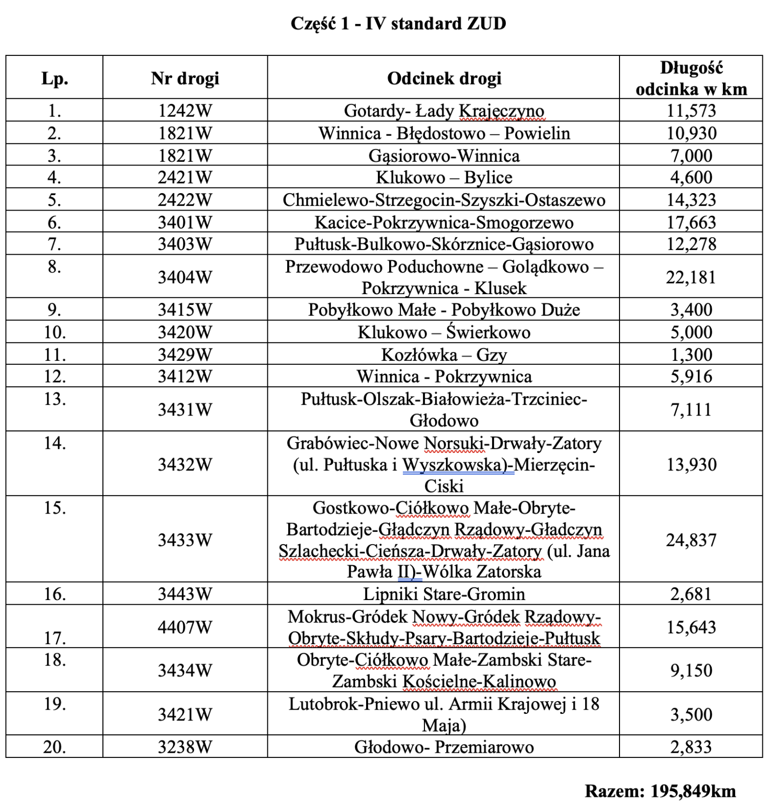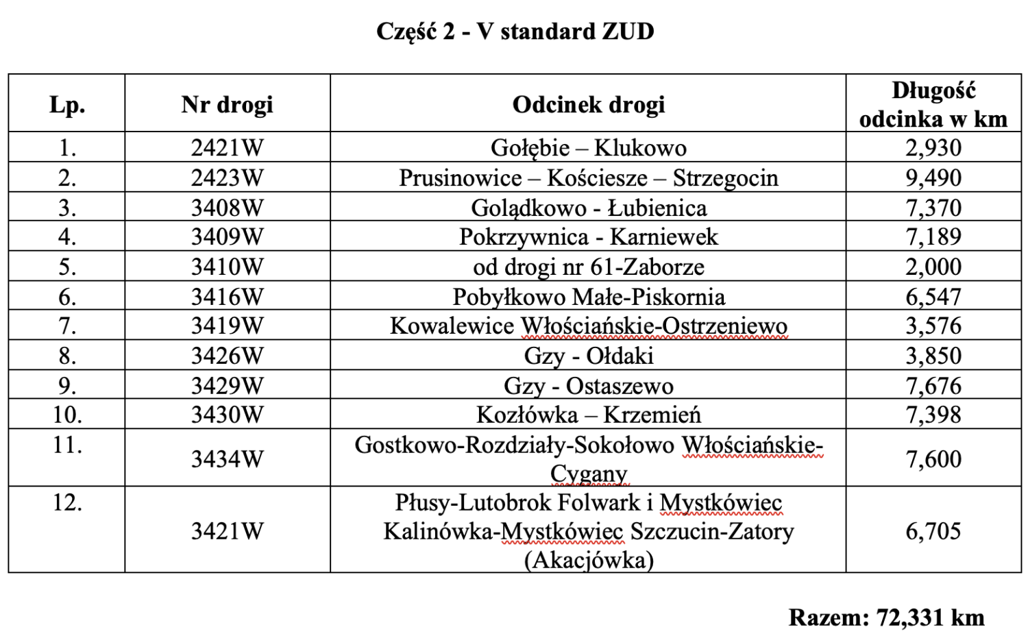 Wszystkie materiały będą nakładane zgodnie z przyjętymi standardami IV, V i VI – tam, gdzie wymaga tego bezpieczeństwo i natężenie ruchu.