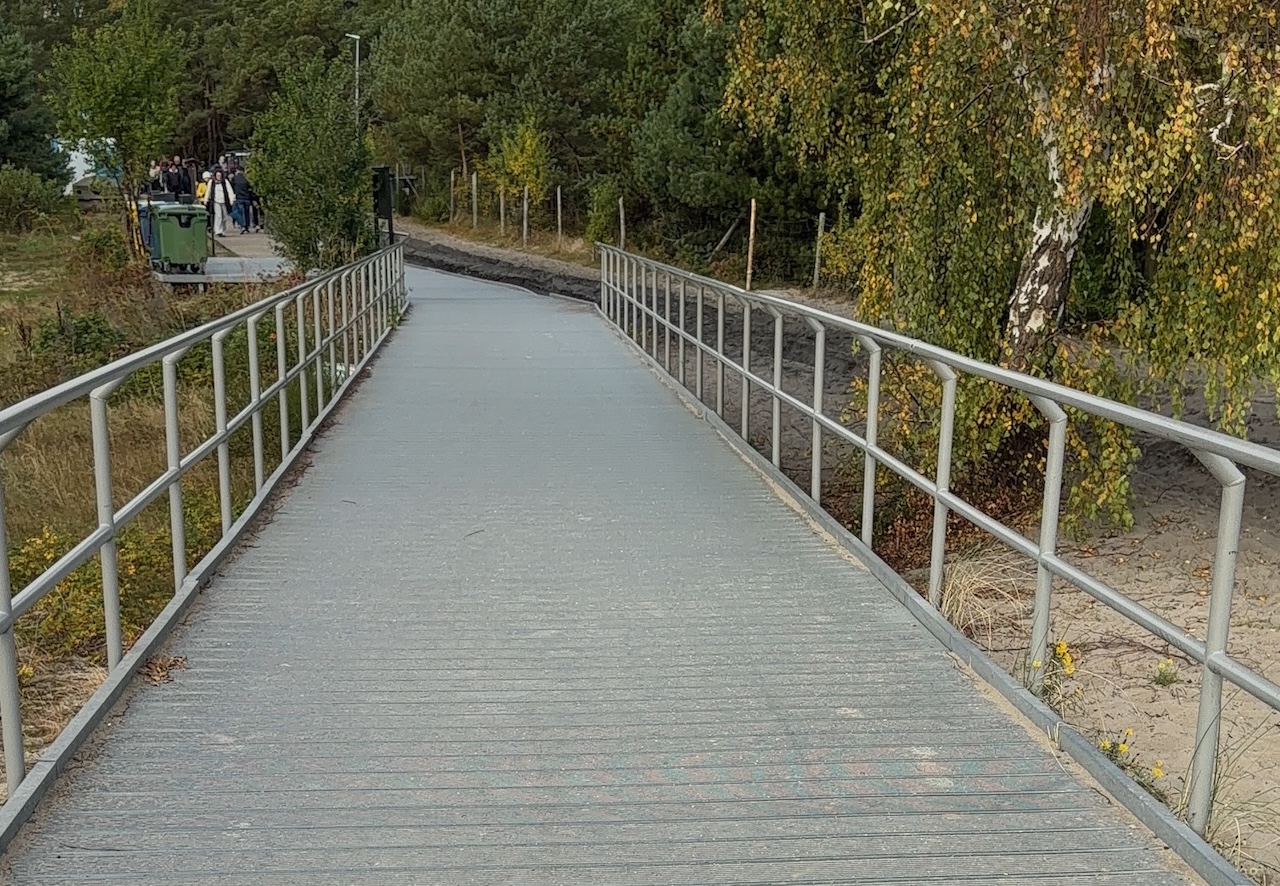 Za Chałupami zaczyna się prawdziwa przyjemność z jazdy – ścieżka prowadzi przez sosnowe lasy, wydmy i plaże, a powietrze pachnie żywicą i solą morską. Odcinek od Juraty do Helu to absolutny hit: gładka, betonowa droga rowerowa biegnąca wśród drzew, z widokiem na rezydencję Prezydenta RP. To miejsce ma swój wyjątkowy klimat – spokojny, zielony i pełen morskiego wiatru.