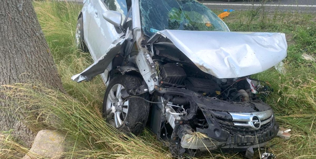 Samochód osobowy marki Opel, którym kierowała 72-letnia kobieta, z nieznanych przyczyn zjechał z drogi, uderzył w drzewo, a następnie dachował.