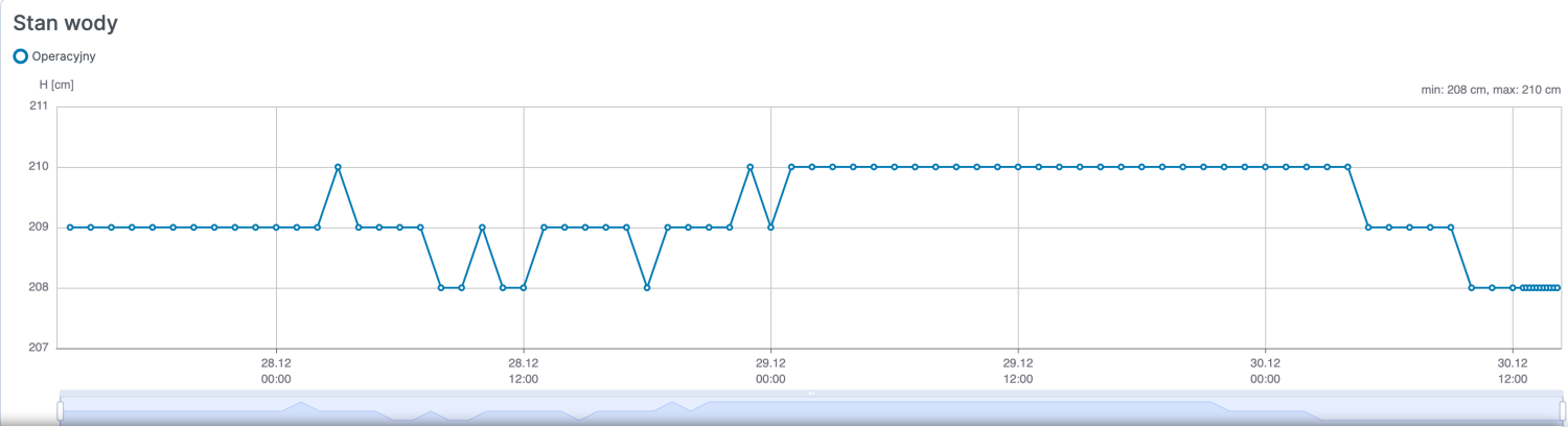 Stan ostrzegawczy wynosi 420 cm, a alarmowy - 480 cm.