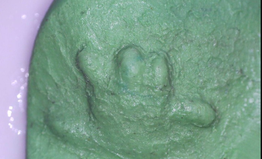 Odciski stanowią odrębną kategorię znalezisk paleontologicznych, a ich wartość naukowa bywa równie duża jak wartość klasycznych inkluzji. Taki trop świadczyłby o tym, że mały gad lub płaz zetknął się niegdyś z ciekłą żywicą, odcisnął w niej ślad, lecz zdołał się uwolnić, zanim żywica go pochłonęła. To swoisty „prehistoryczny „ niematerialny świadek ulotnego spotkania sprzed 40 milionów lat.