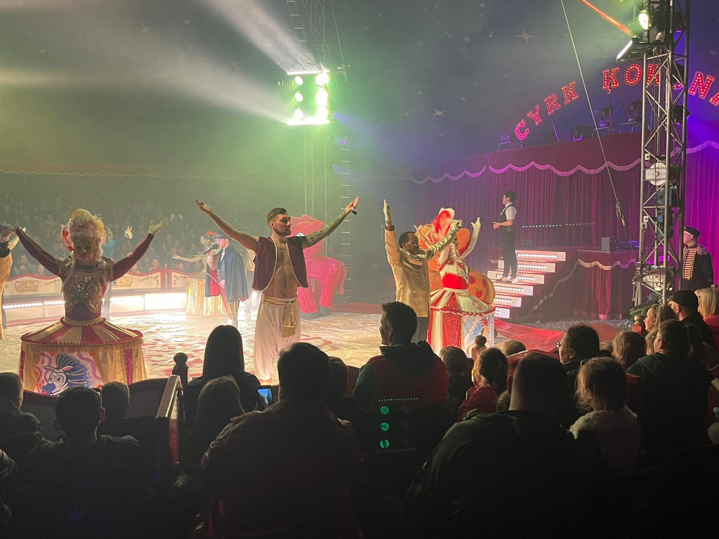 Występ artystów cyrkowych na pułtuskim targowisku (Grabówiec) przyciągną tłumy chętnych do obejrzenia spektaklu. Występy artystów okazały się atrakcją nie tylko dla dzieci. Dobrze bawili się też dorośli.