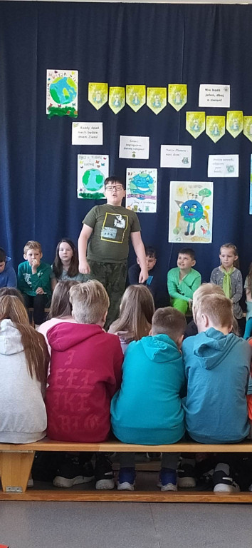 Uczniowie Publicznej Szkoły Podstawowej im. bł. Jana Pawła II włączyli się czynnie w tegoroczne obchody Dnia Ziemi. Poza sprzątaniem swoje okolicy, w szkole przygotowano też proekologiczne przedstawienie z ćwiczeniami przygotowane przez uczniów i nauczycielkę Martę Domańską