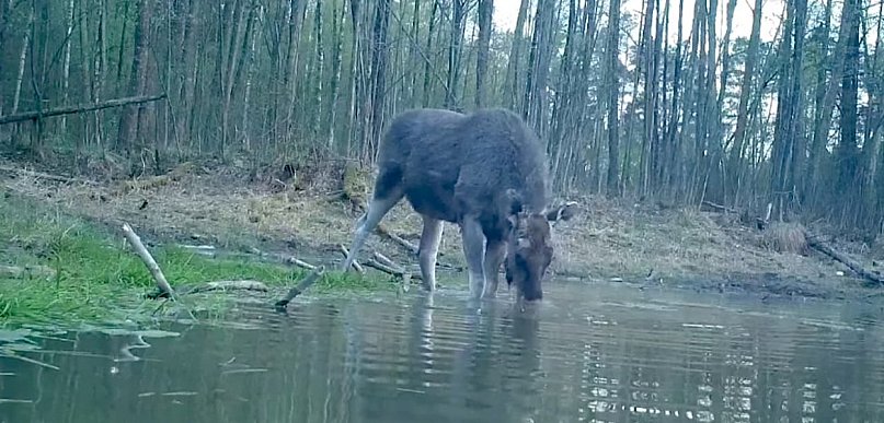 W Nadleśnictwie Pułtusk doszło do niezwykłego spotkania z jednym z największych dzikich ssaków Europy. Fotopułapka zarejestrowała młodego łosia (Alces alces), który spokojnym krokiem przedefilował w okolicach wodopoju, prezentując imponującą sylwetkę i charakterystyczne cechy gatunku.